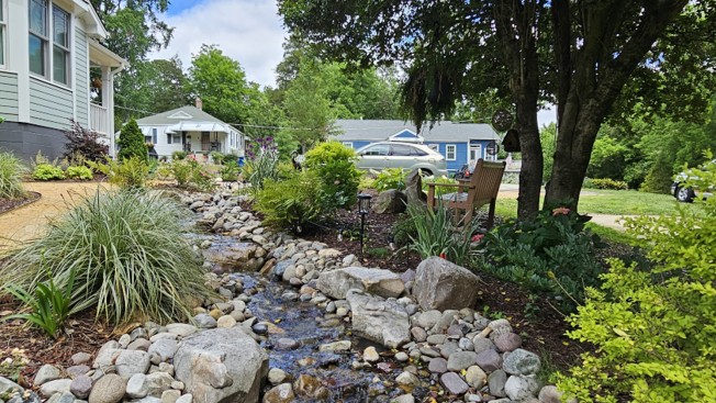 Love the sound of water flowing but don't have a stream in your backyard? We can create one for you! We added lighting as well well transforming their space into an escape.